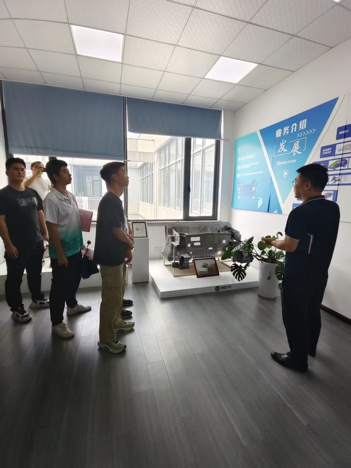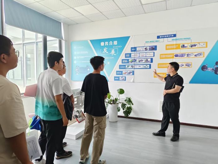 2025年7月5日,寧波工程學院"杭州灣電池修復團"的同學們在林老師的帶領下,前往中機博也(寧波) 汽車技術有限公司開展了一場富有成效的參觀學習活動。本次活動旨在通過實地走訪企業,讓學生們近 距離接觸汽車設計與制造的前沿技術,深化理論知識與實踐應用的結合。