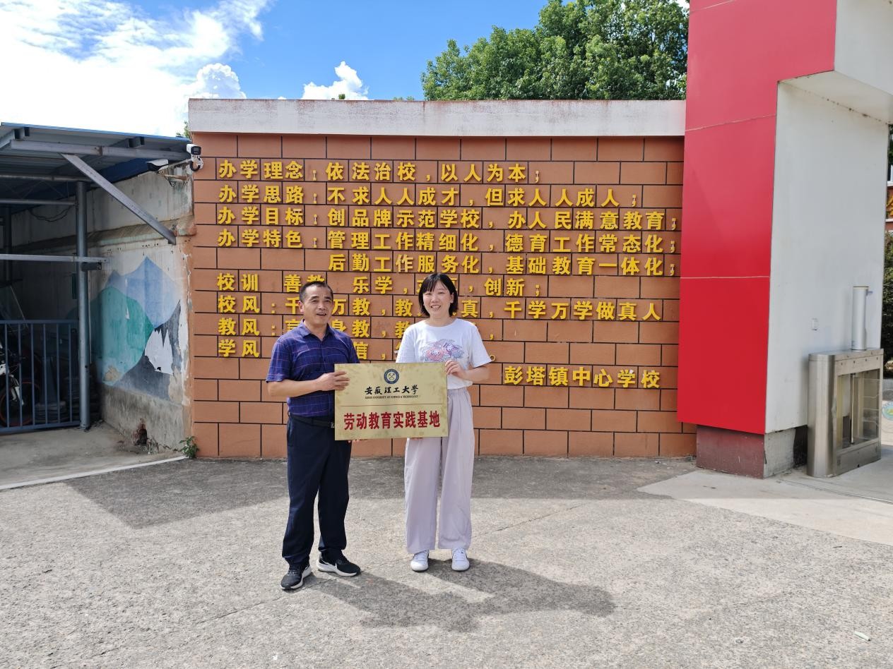彭塔鎮中心學校黨支部書記與帶隊老師授牌合影 攝:張轉娣