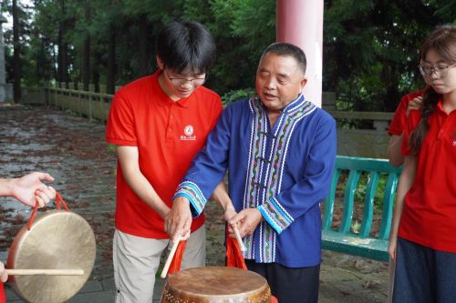 展示過后,宋老師主動提出教授團隊成員敲擊瓦鄉(xiāng)特色的皮鼓。他一邊持鼓槌示范,一邊耐心糾正團隊成員的力度和節(jié)奏??粗蠹艺J真學習的模樣,宋老師臉上露出了欣慰的笑容。他表示,年輕人愿意學這門手藝,就讓他看到了傳承的希望。