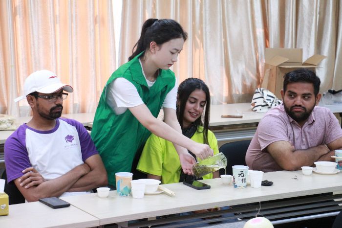 非遺入杯,讓文化“活”起來 7月上旬,實踐團隊走進無錫市新吳區衛星社區,打造沉浸式非遺茶文化工坊。團隊負責人作為無錫毫茶非遺傳承人現場展演了毫茶制作絕藝,縷縷茶香中,傳統技藝的魅力觸手可及;精心設計的“環保盲品挑戰”環節,讓居民在對比品鑒中切身感受團隊研發的環保紙杯與傳統塑料杯的差異,生動傳遞綠色消費理念。團隊成員們還熱情講解茶文化知識,組織互動問答,特別是吸引眾多外國友人參與,在活動中積極傳播中國傳統茶文化。