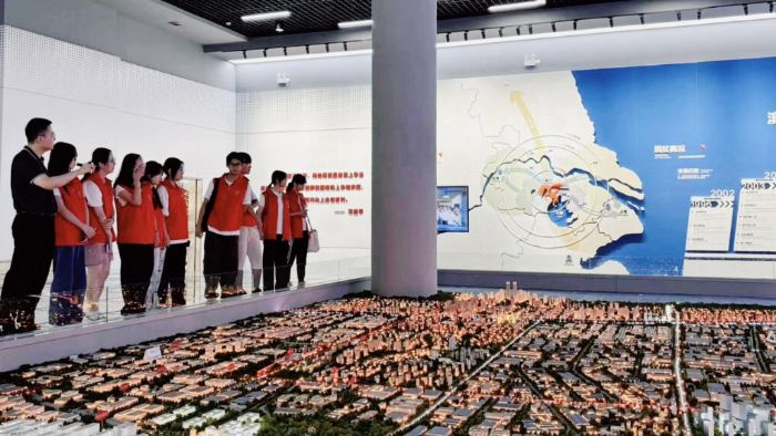 武高新規(guī)劃館則通過城市規(guī)劃沙盤、沉浸式影像、互動顯示屏等多元載體,呈現(xiàn)出武進高新技術(shù)產(chǎn)業(yè)開發(fā)區(qū)的“綠色發(fā)展藍圖”,讓隊員們直觀地感受到武高新這一現(xiàn)代化熱土的無限潛力。“你看這個區(qū)域,原本是傳統(tǒng)工業(yè)區(qū),通過‘退城進園’和產(chǎn)業(yè)升級,現(xiàn)在建成了生態(tài)產(chǎn)業(yè)園,還配套了綠色能源供應系統(tǒng)。”講解員如是介紹。團隊成員蘇航在參觀心得里寫道:“好的發(fā)展,是讓經(jīng)濟增長與生態(tài)保護有機結(jié)合,相輔相成的發(fā)展——武高新的規(guī)劃,讓我們看到了這種經(jīng)濟與生態(tài)和諧共生的美好前景。”