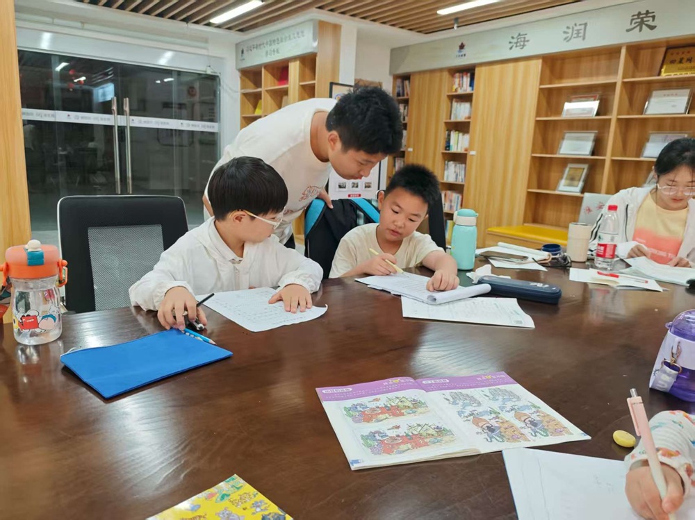 除了豐富的特色活動,日常作業輔導也是愛心暑托班的重要任務。實踐團成員根據孩子們的年級和學科需求,進行一對一的作業輔導。他們耐心解答孩子們在學習中遇到的問題,幫助孩子們梳理知識點,指導他們完成暑期作業。在實踐團成員的幫助下,孩子們不僅解決了學習上的困難,還養成了良好的學習習慣,學習效率得到了明顯提高。