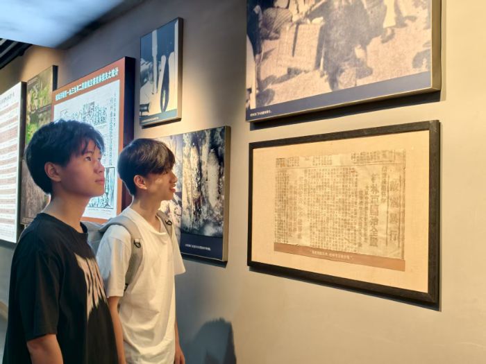 尤為引人注目的是館內(nèi)保存完好的辦公用具、信函文稿、抗戰(zhàn)時(shí)期的報(bào)刊雜志和書信手跡等文物。這些展品雖靜默無聲,卻生動(dòng)再現(xiàn)了當(dāng)年抗戰(zhàn)時(shí)期八路軍在桂林開展工作時(shí)的真實(shí)情景,使隊(duì)員們仿佛穿越時(shí)空,與那一段崢嶸歲月遙相呼應(yīng)。