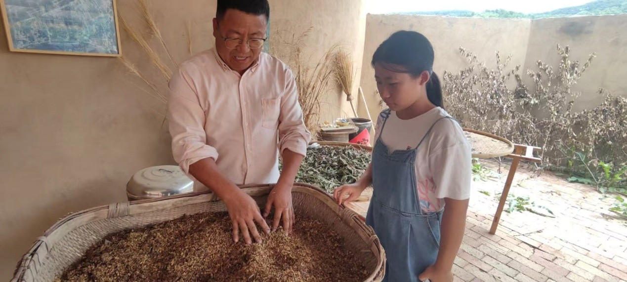 李金豹現場演示扎染技藝時,將古法熬制的藍靛染液注入陶缸,當實踐團成員親手將捆扎好的白布浸入染缸,靛藍逐漸滲透棉纖維的瞬間,傳統工藝與現代體驗完美交融。實踐團成員感慨:“捆扎時的每一道褶皺,都是與歷史的對話。”這種"親近自然、就地取材"的傳承方式,既讓學員直觀感受"自己動手、豐衣足食"的南泥灣精神,又因“取之自然”使得制作過程無污染物產生,實現了社會、企業、鄉村與環境資源之間的和諧共生與多方共贏。