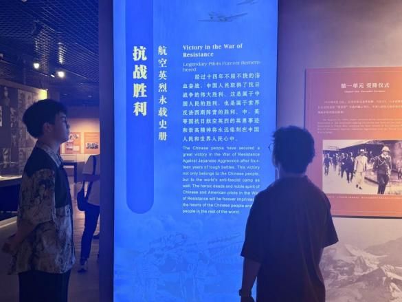 銘記英雄——飛虎隊主題歷史圖片展:聚焦二戰時期中美聯合抗日的珍貴歷史影像,以“勿忘歷史,反對戰爭”為核心,分為五個部分:同盟抗敵(援華飛虎隊變遷)、并肩作戰(中美軍民聯合抗日)、生死營救(血火鑄造的友誼)、抗戰勝利(航空英烈永載史冊)、飛虎長汀(千年古城風華)。珍貴的歷史圖片,定格了飛虎隊員翱翔長空、與中國軍民攜手抗敵的英勇瞬間。導覽員飽含深情地講述了飛虎隊為中國人民抗戰勝利所作出的不可磨滅貢獻。隊員們肅然起敬,凝視圖片中堅毅的面容和激烈的戰斗場景,英雄熾熱的愛國情懷與無畏犧牲精神震撼每個人的心靈,和平的來之不易在這一刻有了更沉甸甸的分量。