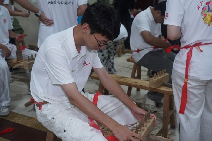 盡管動作生疏,大家依然認真學習每一個步驟,努力還原草鞋的傳統(tǒng)編法。通過親身體驗,隊員們深刻感受到革命年代物資緊缺條件下的勞動艱辛,也更加直觀地理解了井岡山斗爭時期紅軍戰(zhàn)士自力更生、艱苦奮斗的堅定意志。