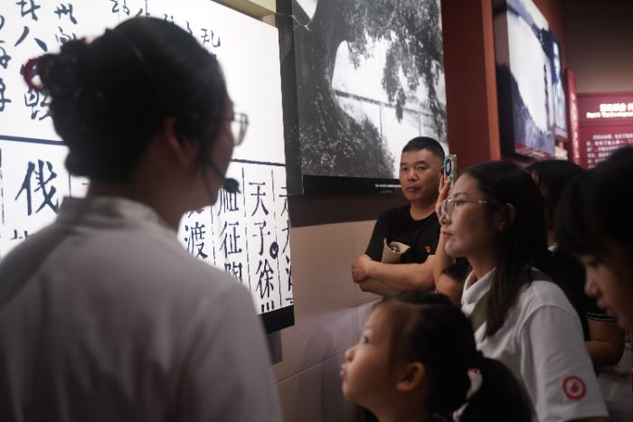 實踐團領(lǐng)隊正在聽講解員講解革命歷史(周春天 攝)