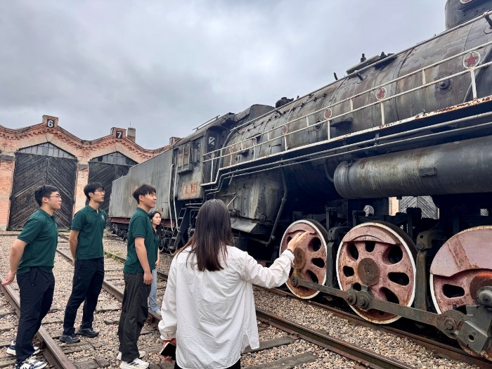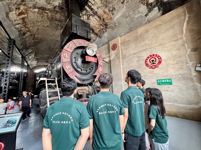 實踐隊成員緊隨講解員步入機車庫內部,看到了陳列其中的不同型號蒸汽機車模型,清晰梳理了中國蒸汽機車從早期引進仿制,到新中國自主研制主力機型的發展脈絡。大家仔細觀看模型的細節與構造,聆聽發展歷程的講解,對中國鐵路機車工業的艱辛起步與技術進步有了更系統的認識,也深刻感受到工業遺產所承載的厚重歷史。