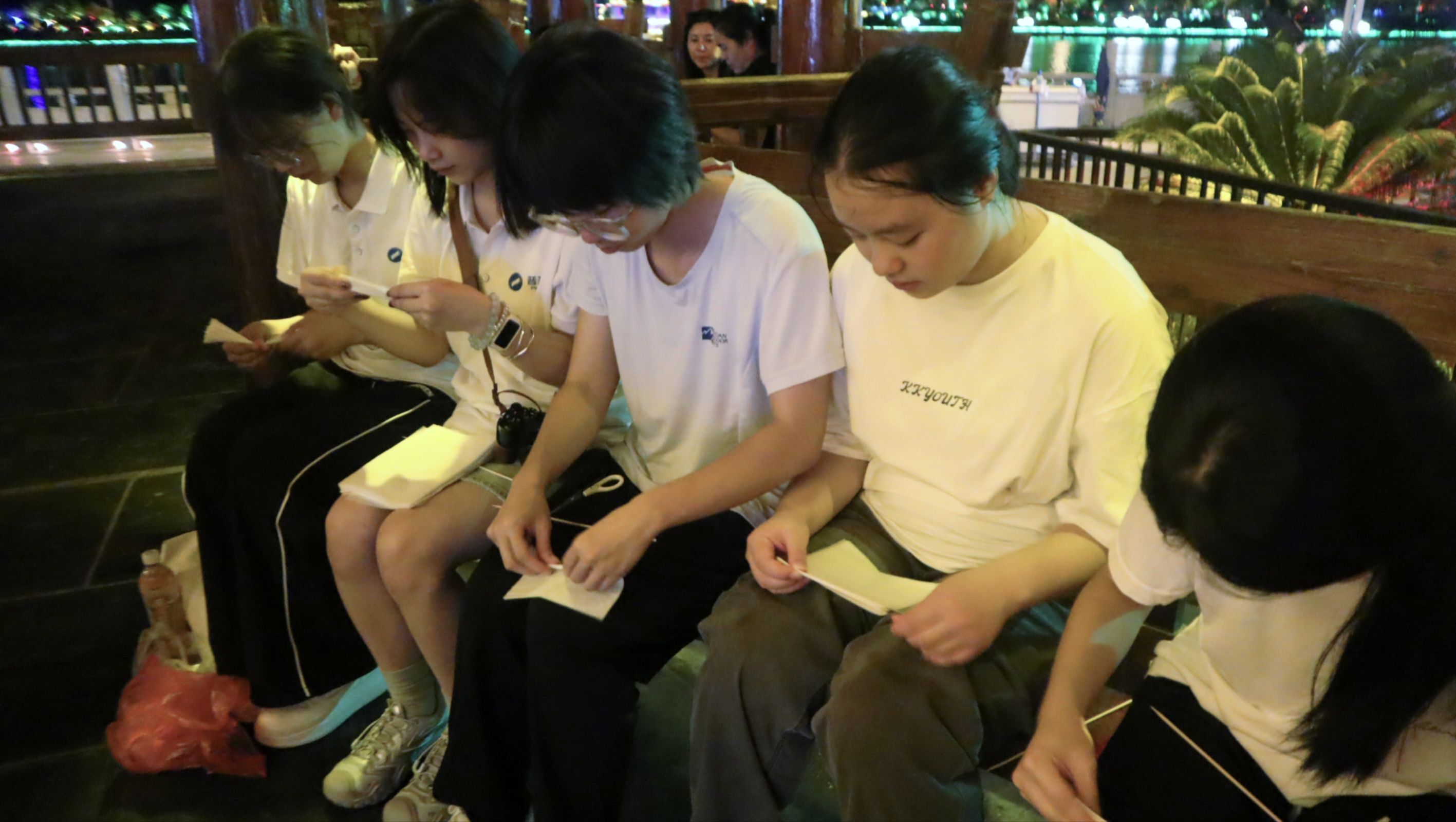 8月20日夜幕降臨,小分隊成員們齊聚一處,專注投入到白紙花的制作當中。這是當地祭拜掃墓時都會親手制作的紙花,承載著對先烈深深的緬懷之情。大家圍坐在一起,手法雖有生疏但卻無比認真,紙張在指尖折疊、裁剪,每一個動作都飽含著敬意。