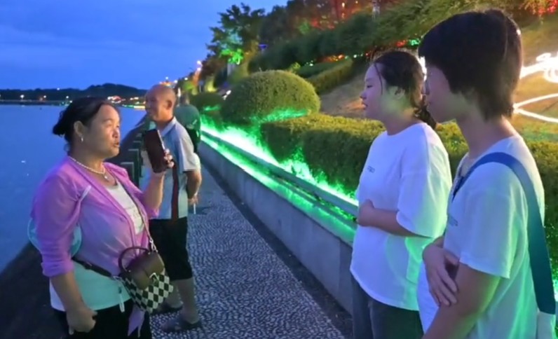 圖為隊員與彭老對話 湖南懷化芷江小分隊供圖