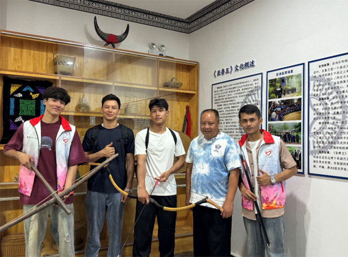 四、團隊成員心得 隊長李晨露:作為實踐隊隊長,貴州紫云之行讓我對“青春擔當”有了深刻體悟。亞魯王文化研究中心的亞魯王文書籍、布依族“六月六”的長桌宴,讓我觸摸到少數民族文化的鮮活脈動。跨學科協作中,同學們用漢語向留學生講解布依族民族文化,一同參與蘆笙樂器的學習、多語種直播對比文化圖騰,讓我明白“講好中國故事”需找到文明共通點。與阿富汗留學生的交流更讓我確信,青年是文化擺渡人。未來,我們將帶著這份感悟,讓非遺之花在“一帶一路”上綻放。