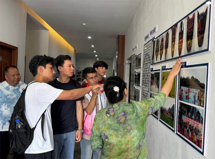 二、跨學科融合,創新文化傳播 團隊充分發揮漢語國際教育、英語專業的優勢,通過多語種直播、公眾號推文、調研報告等形式,多角度呈現紫云非遺的文化內涵。實踐期間,團隊成員與阿富汗留學生攜手開展“講好中國故事”主題交流,通過將苗族史詩、刺繡技藝等非遺文化創新融入國際中文教學,搭建起中外文明對話的橋梁。留學生歐陽感慨道:“英雄的馬蹄聲從未被國界阻擋,這次實踐讓我看到中國文化與世界文明的共鳴。”