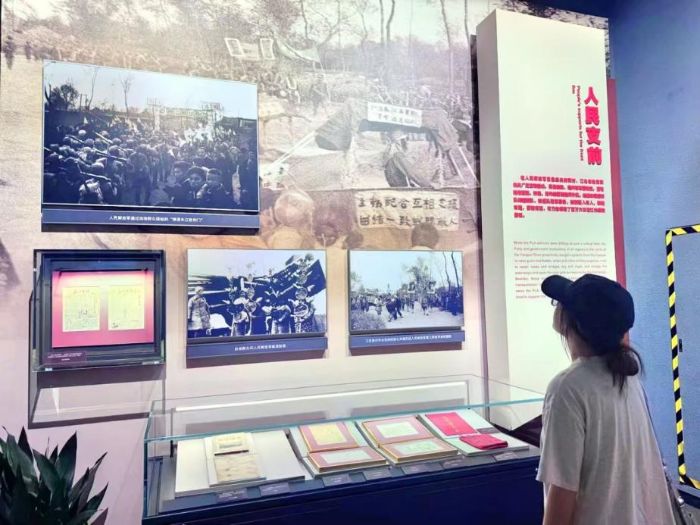 展柜中展出的手工布鞋、簡易食具以及一張張支前登記表,承載著無數普通百姓對解放事業的默默奉獻。講解員講述了數位無名支前群眾不畏艱難、英勇協助的真實故事,讓隊員們深受觸動。在參觀過程中,大家不時駐足傾聽、拍照記錄,深刻體會到渡江勝利離不開人民群眾的無私支持,也更加理解了“軍民魚水情”的時代意義。