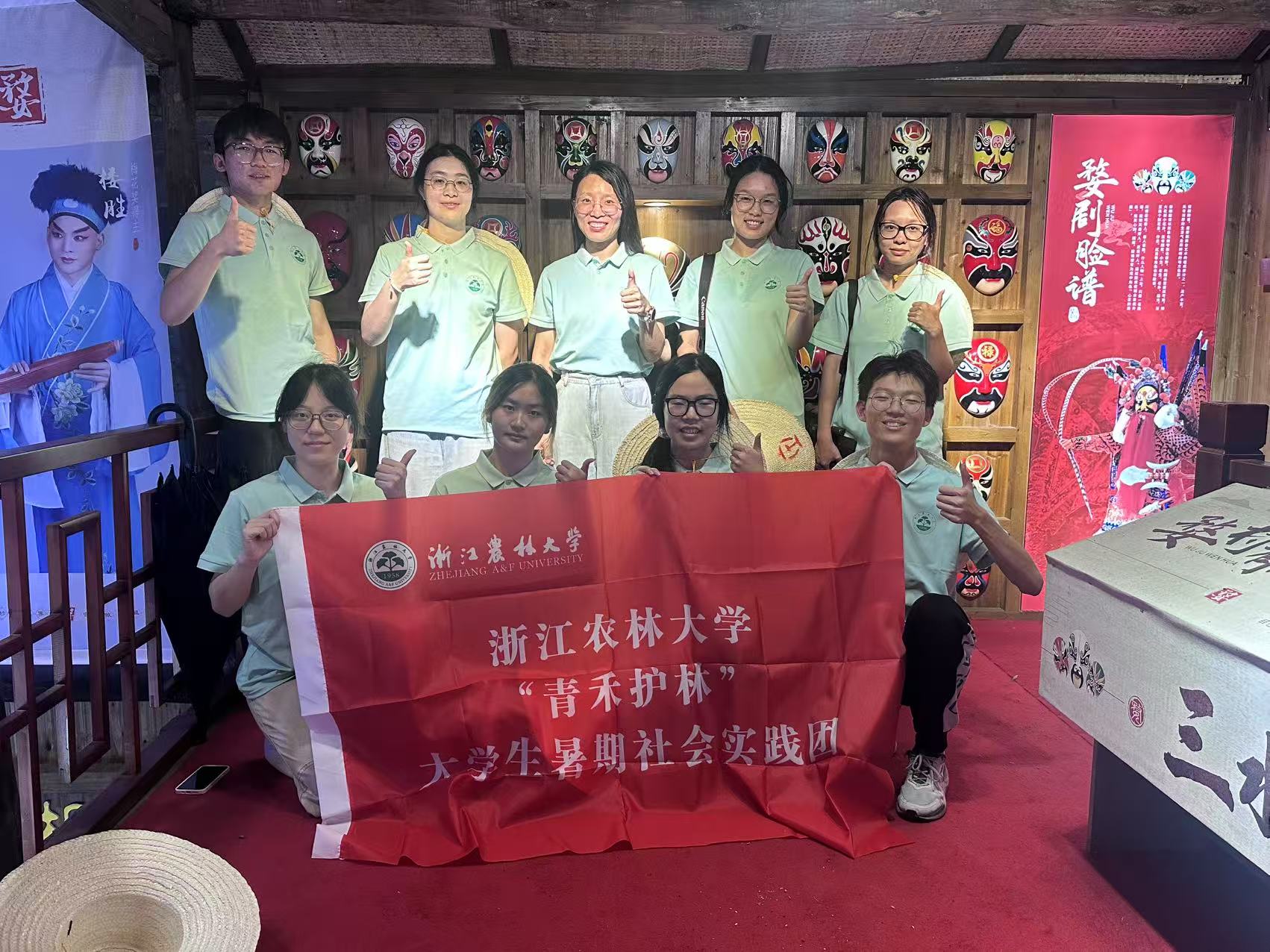 圖8 實(shí)踐團(tuán)與婺劇臉譜合影
