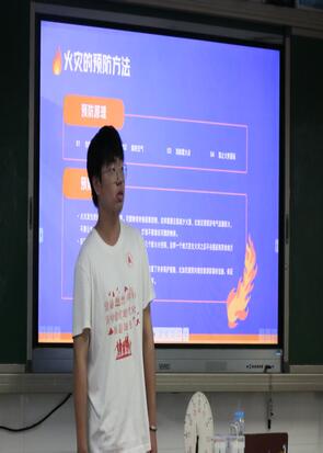 課程第二部分聚焦“火災預防與逃生”。老師先播放了校園火災模擬視頻,展示了“未熄滅的蠟燭引燃書本”