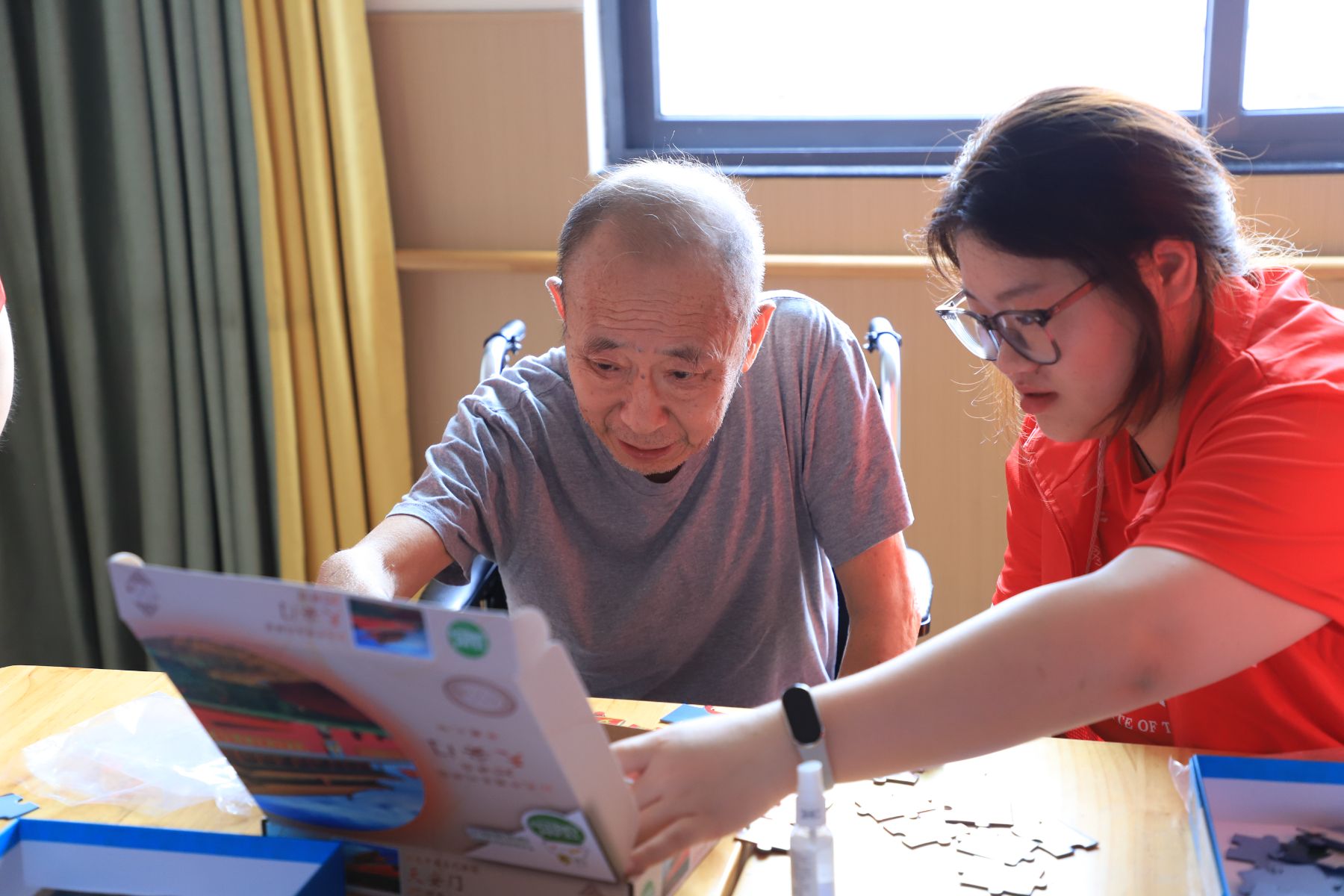 他們用通俗易懂的語言,耐心協助老人們進行紅色黨建知識拼圖。年輕的手與布滿歲月痕跡的手默契配合,在拼圖歸位間拉近了心與心的距離。并且手把手協助老人們進行“色彩療愈”填色卡活動。盡管老人們手部時有顫抖,但每一筆都凝聚著專注與熱愛。當色彩斑斕的畫作完成時,老人與隊員的臉上都洋溢著自豪與喜悅。