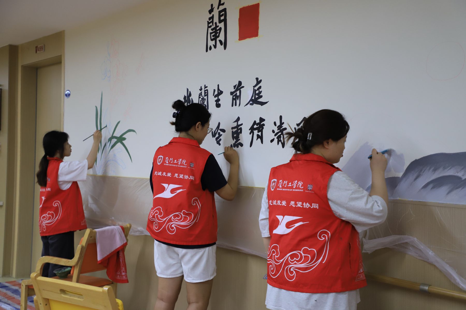 為深入貫徹習近平總書記指出的堅持馬克思主義同優秀傳統文化的“第二個結合”思想,實現兩種文化形態的內在契合,并落實習近平總書記關于青年工作的重要思想,堅持“受教育、長才干、作貢獻”的宗旨,廈門工學院建筑科學與土木工程學院積極響應號召,組建“丹青繪暖,薪火傳情”為主題的暑期社會實踐團隊——“紅色青春”社會實踐隊,于暑期赴廈門我家養老院,開展“紅色墻繪”與“銀發關懷”雙軌實踐行動,用青春畫筆傳遞時代溫情,將馬克思主義與中華優秀傳統文化結合,繪就“孝善新篇”,為養老環境注入生機與活力。