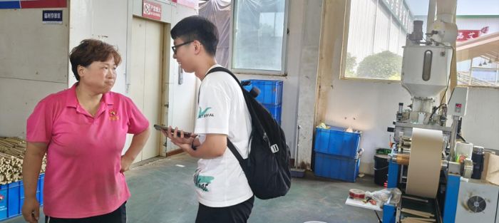 團(tuán)隊(duì)成員還通過(guò)一位員工阿姨了解到許多關(guān)于產(chǎn)業(yè)發(fā)展與鄉(xiāng)土聯(lián)結(jié)的故事——車間工作人員大多是周邊村鎮(zhèn)居民,藥益寶的向上發(fā)展為當(dāng)?shù)貛?lái)了許多就業(yè)崗位,切實(shí)拉動(dòng)經(jīng)濟(jì)發(fā)展的同時(shí)提高了知名度。談及車間的變化,員工阿姨感慨道:“這幾年車間添了不少新設(shè)備,以前好多活兒都得靠手一點(diǎn)一點(diǎn)做,費(fèi)力氣還慢”,她邊說(shuō)邊示意團(tuán)隊(duì)成員瞧一瞧裝滿艾條的箱子:“現(xiàn)在機(jī)器幫著分擔(dān)了大半,人輕松了不少,出活兒也快多了”。