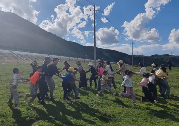 5.參加草地集會,深化漢藏交流 牛皮靴踏響大地,踢踏舞步卷起草屑與歡叫的旋風,藏袍翻飛孩子們踏著舞步,實踐隊員也加入進去一起舞蹈。