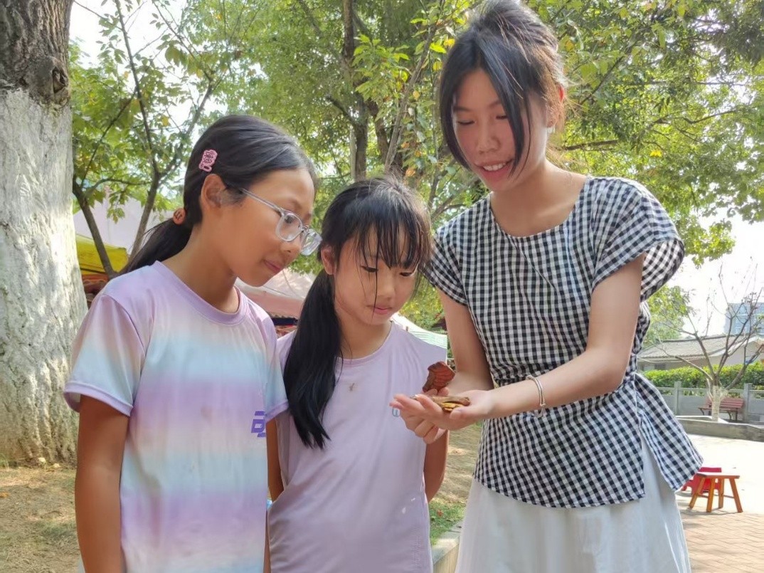 (圖為成員黃欣攜帶中藥材向孩子們展示 通訊員林子涵攝)