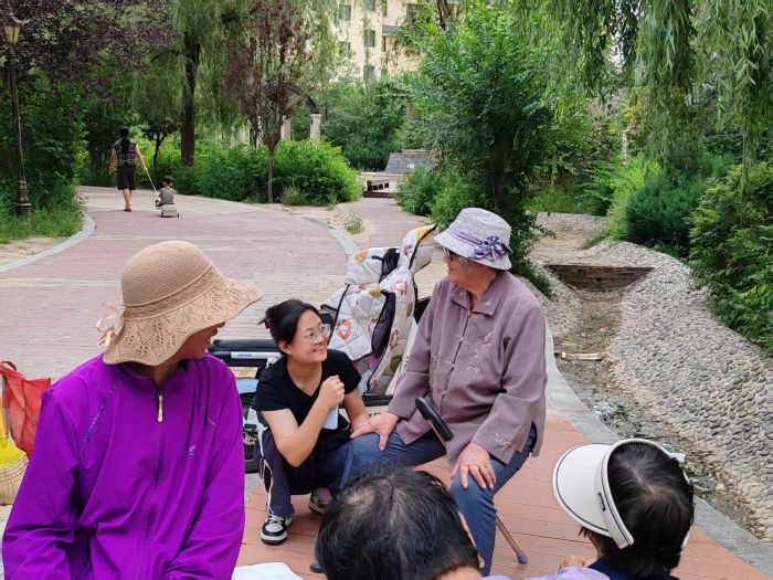 (圖為成員周慧在采訪社區居民 通訊員雷雪攝)