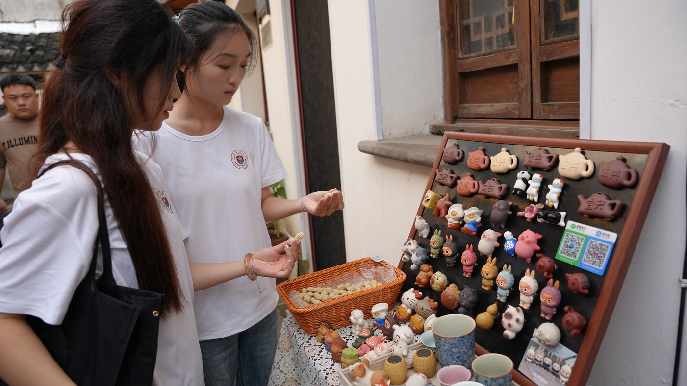 在古南街和陶二廠的走訪中,實踐團成員們看到了古老紫砂文化的當代創(chuàng)新。從傳統(tǒng)手工作坊到現(xiàn)代文創(chuàng)空間,實踐團成員們將這些新老交融的場景一一收錄在鏡頭之中。我們還與當?shù)厣虘羯钊虢涣鳎瑸樗麄兲峁┝艘恍┬麄鹘ㄗh,比如如何借助短視頻平臺展示紫砂文化,如何將產(chǎn)品與在地文化特色相結(jié)合等。