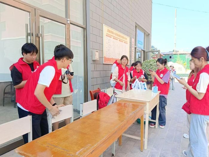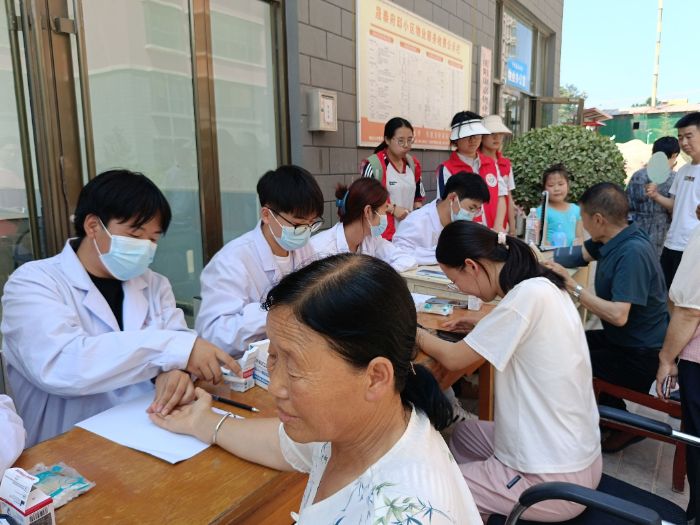 活動前,實踐團隊精心籌備:制作通俗易懂的疾病預防傳單,調試義診設備確保精準,采購實用小禮品等。抵達后迅速分工搭建服務點,活動有序開啟。發放傳單時,成員用運用淺顯易懂的語音結合本地疾病特點,針對老人、年輕人等不同群體講解健康知識。義診區里,量血壓、測身高、查血糖環節井然有序,成員仔細操作記錄,耐心答疑,糾正居民健康認知誤區。從觀望到主動參與,居民熱情漸漲。一位大爺測完血壓后感慨:“你們講得細、做得實,真貼心!”小禮品發放讓互動更溫馨,居民的認可與點贊成為實踐團隊的動力。