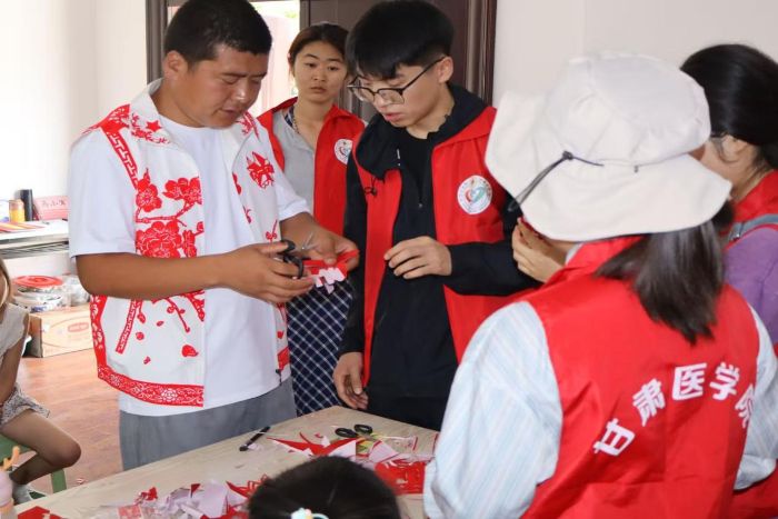 圖為非遺傳承人指導團隊成員剪紙的場景。 朱帥琦 供圖