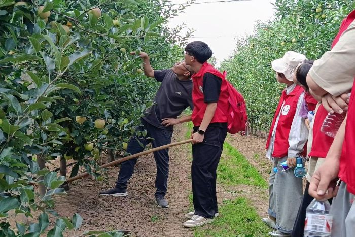 下午,實踐團隊走進寧縣果園,果園負責人向實踐團隊介紹了當地蘋果栽培的優勢。在技術人員的指導下,團隊成員親身體驗果樹修剪、除草等農事活動,了解現代果園的先進種植管理模式。