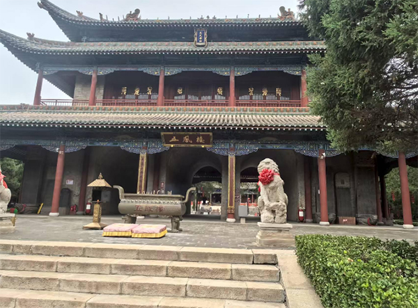 往前走,五鳳樓的雄姿讓所有人駐足。這座三層樓閣高約20米,每層均有飛檐,檐角向上翹起,如五只鳳凰展翅欲飛,風鈴在風中輕響,仿佛在訴說“堯與四賢臣(舜、禹、皋陶、后稷)共治天下”的傳說。導游介紹,“五鳳齊飛”是古人對理想政治生態的想象——君主賢明,臣子得力,君臣同心,天下太平。我忽然想起課本里“堯帝禪讓”的故事:當堯帝覺得自己年事已高,便遍尋天下賢才,最終將帝位傳給了賢德的舜,而非自己的兒子。這種“天下為公”的胸懷,不正是“五鳳齊飛”的核心嗎?