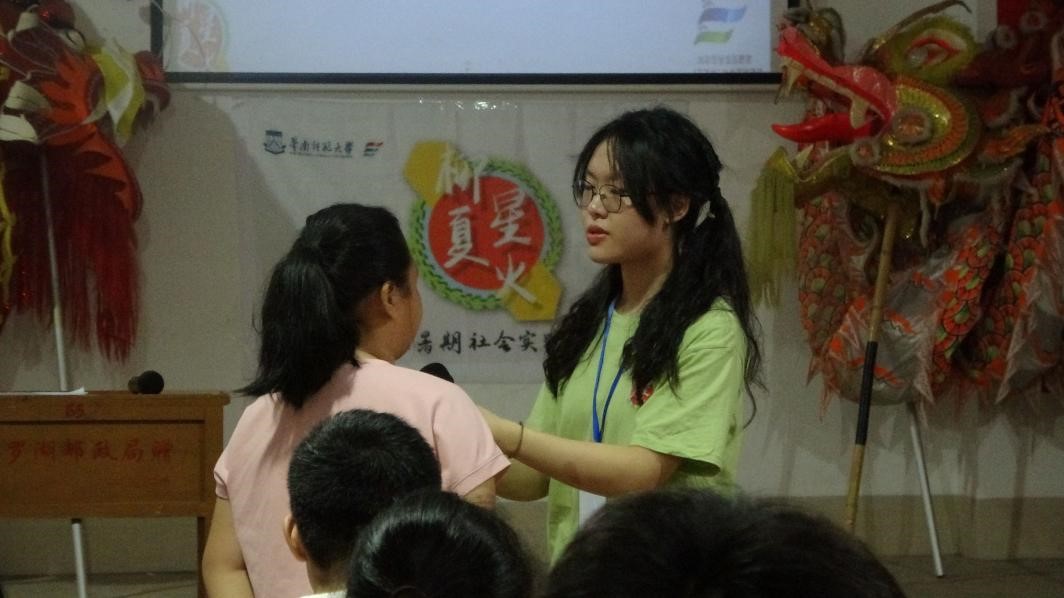 (圖為詩歌朗誦課上柳夏星火隊(duì)隊(duì)員與學(xué)生互動)