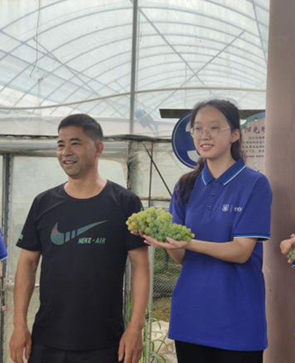 在當地工作人員的帶領下,實踐團還走訪了當地的特色民宿與葡萄產業園區,與民宿的負責人姜光照、葡萄產業園區管理員姜承堂開展對話。在兩山合作社大下姜分社,成員們也與大下姜鄉村振興有限公司總經理黃立法展開交流。從走訪交流中,成員們進一步體會到了因地制宜發展特色產業的重要性。