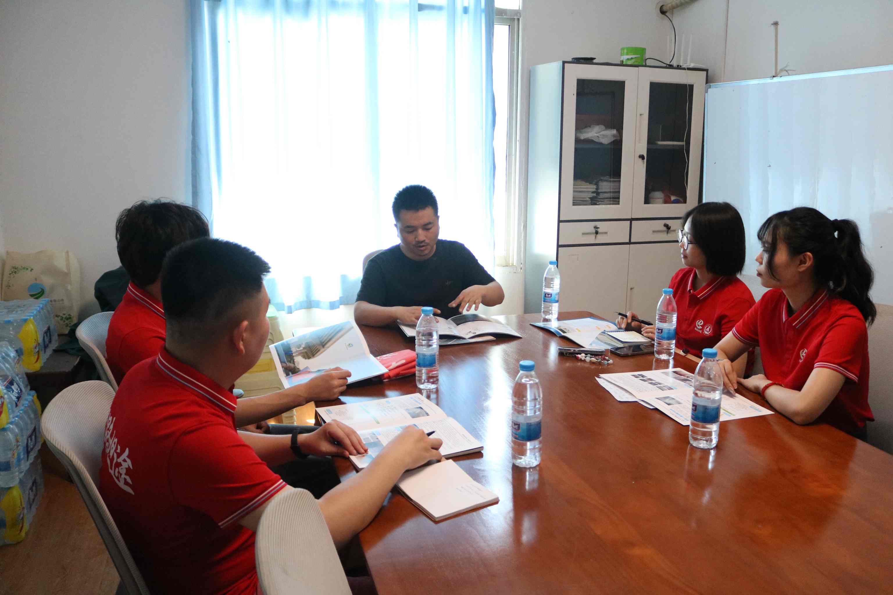 參觀完公司生產線后,團隊隊員與鄭經理就農村路面病害成因進行了交流探討,分析了陜南與陜北路面病因的區(qū)別。