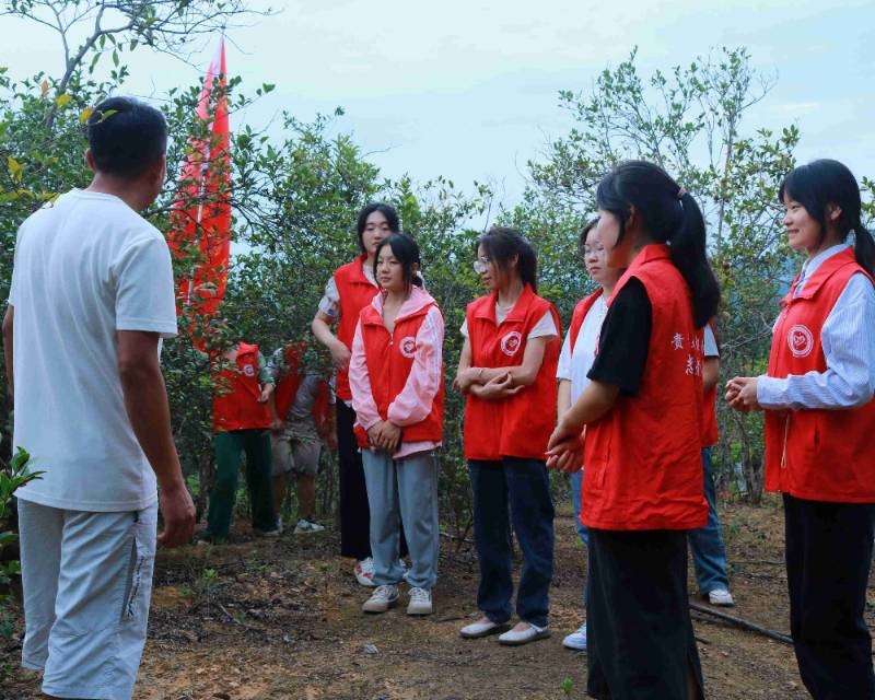 (圖為吳傳東帶領支教隊隊員參觀油茶種植地)