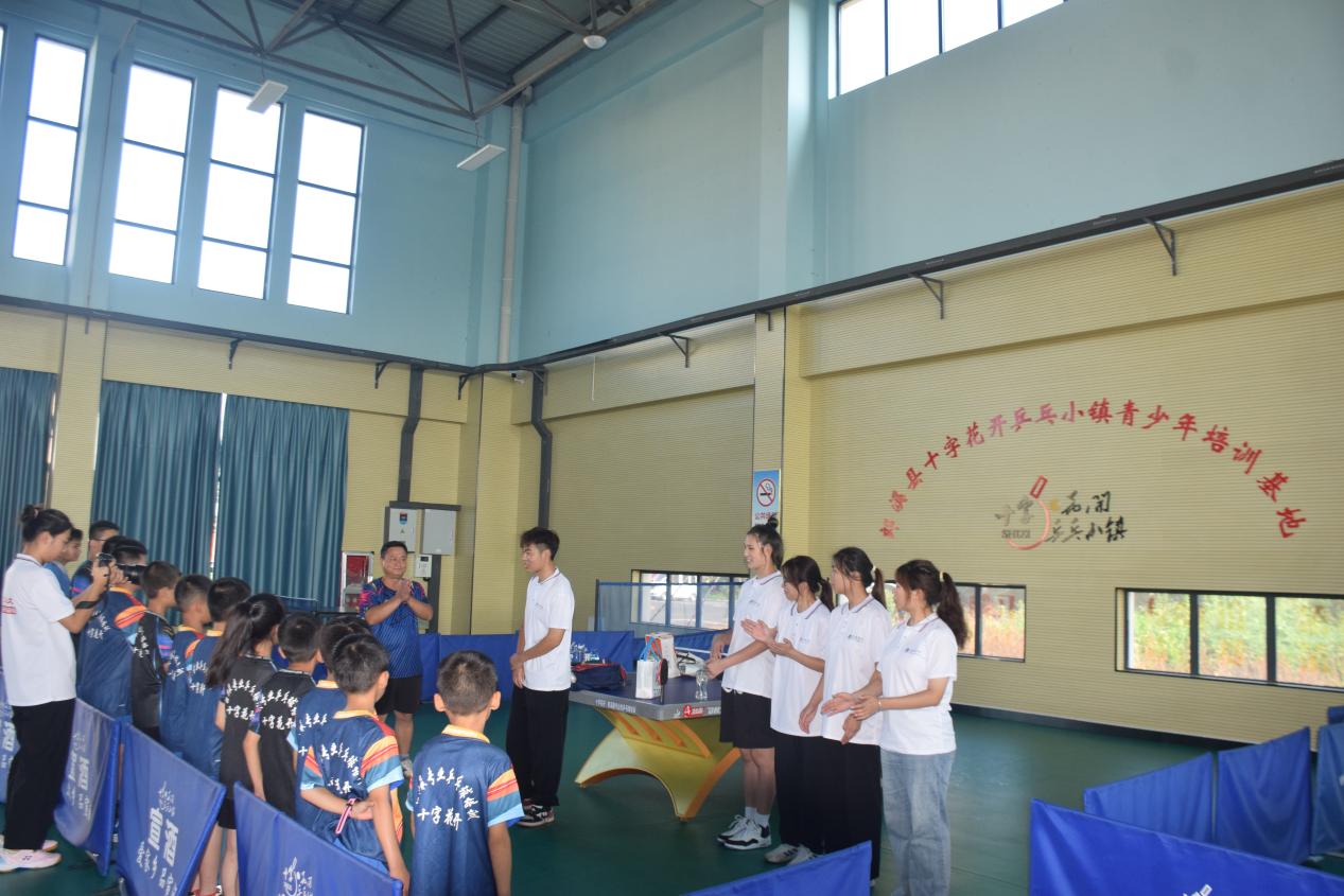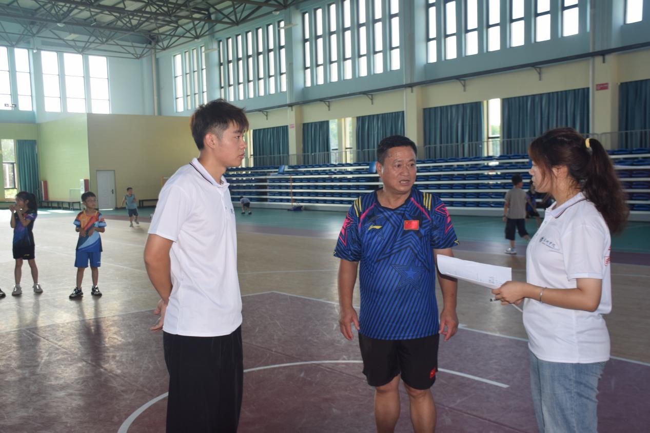 圖為實踐團成員和甘兆奎教練交流十字鎮體育發展情況