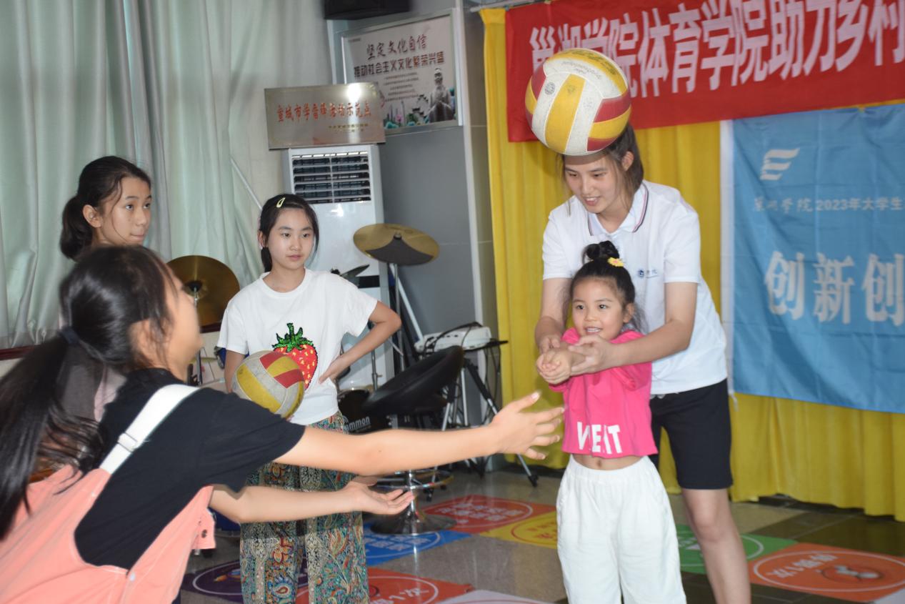 圖為實踐團成員在進行排球雙手顛球集體教學