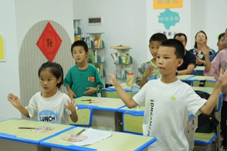 圖為小朋友們和團隊成員們一起跳手勢舞的場景。(攝/何晨昕)