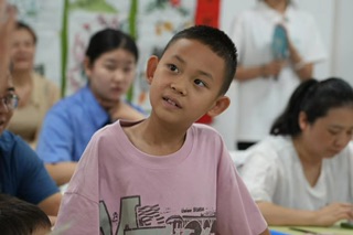 圖為小朋友接受團隊成員的采訪。(攝/何晨昕)