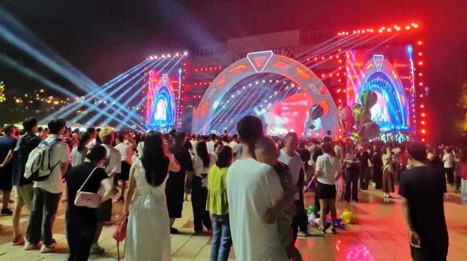 走到廣場中心,燈光閃爍,人群熱鬧非凡,為舞臺上的大涼山歌手而歡呼,為自由的歌聲而沉醉。