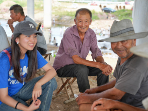 村旁的臨滕高速高架橋下,陰涼舒爽,是乘涼的好去處,村民大多喜歡再次聚集,玩紙牌,嘮家常。實踐隊成員們也來到這里,與村民親切交流,并進行了接地氣的宣講,向村民們講解沂蒙精神與紅色故事,介紹黨和國家政策,解答村民疑問,傾聽村民意見。