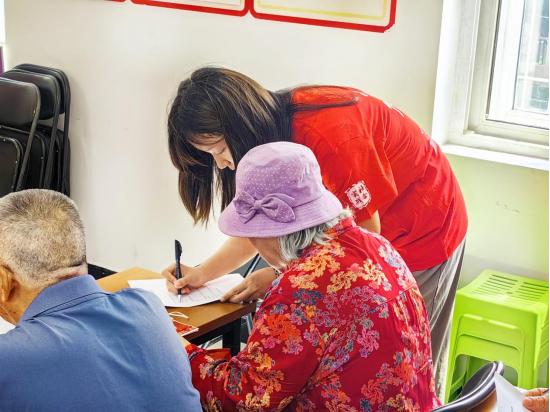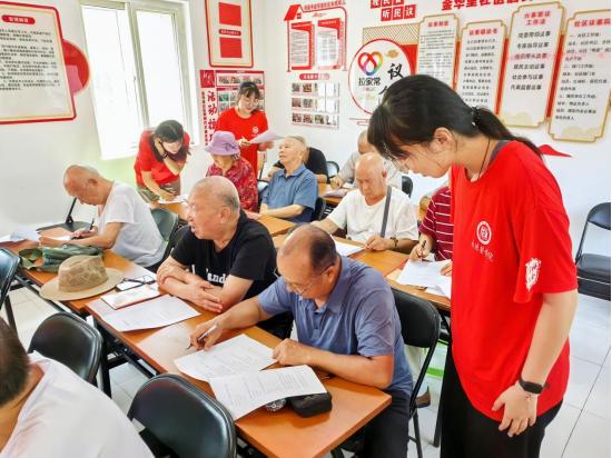 圖為實(shí)踐隊(duì)員對(duì)社區(qū)老黨員進(jìn)行問(wèn)卷調(diào)查 李蒙攝