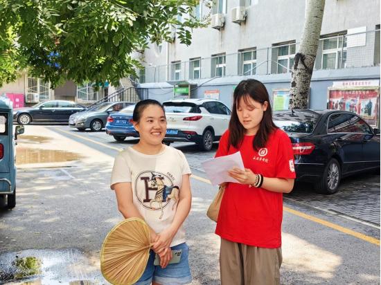 圖為“紀(jì)法清風(fēng)燕趙行”社會(huì)實(shí)踐隊(duì)成員采訪社區(qū)群眾 李蒙攝