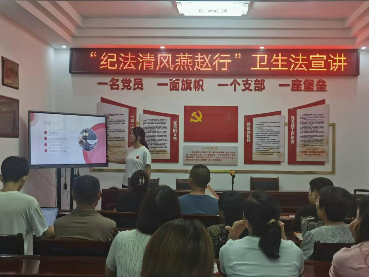 圖為“紀法清風燕趙行”衛生法宣講團隊在石家莊崗上村黨群服務中心做衛生法宣講 朱佳音攝
