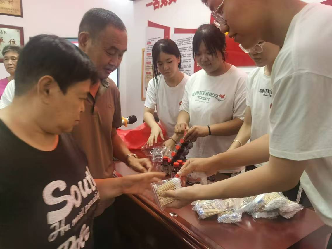 身為醫學生,實踐隊員們發揮醫學專業優勢,也為崗上鎮的居民們展開了長達一小時的衛生健康知識科普,讓他們懂得了衛生法在日常生活中的重要性。并在活動即將結束的時刻,為他們發放醫療物資,以實際行動為紀法教育及鄉村醫療衛生事業添磚加瓦,貢獻青春力量。并在活動結束后,實踐隊員們進行醫學生宣誓,并與參與活動的居民一起合影留念,記錄下有意義的每一刻。