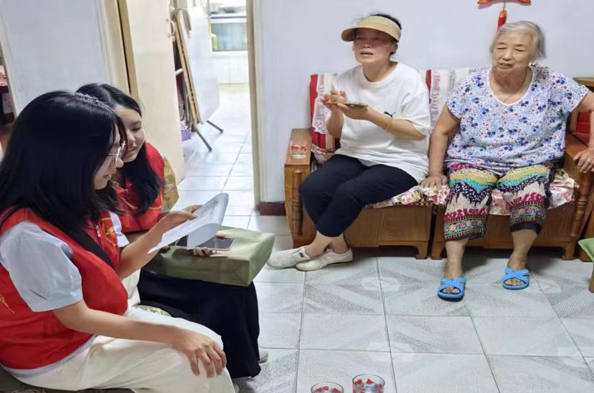 實踐隊成員向養老院老人發放調查問卷 弋亞苗供圖
