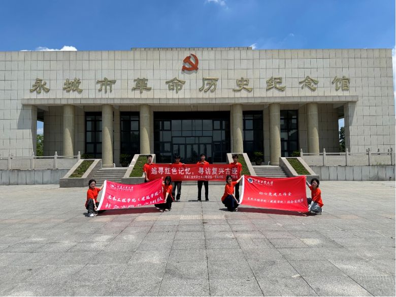 圖為團隊成員于永城市革命歷史紀念館前拍照。 李宗赫 攝