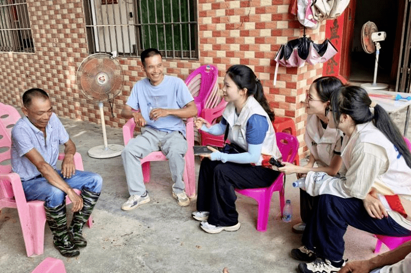 (圖為實踐團在黎雄村與當地村民進行訪談 陳瑋鋒 供圖)