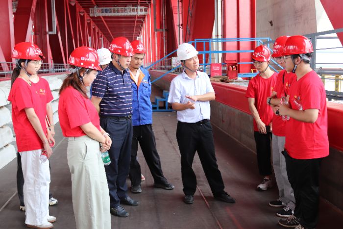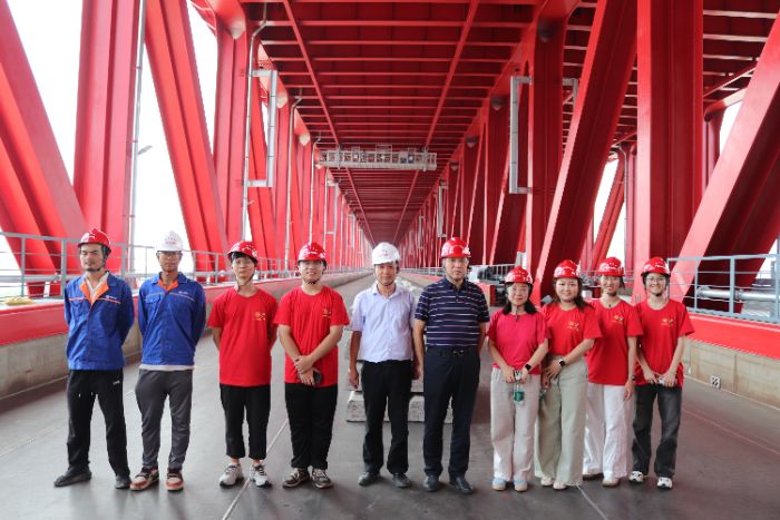 為引導青年學子感知國家橋梁研究前沿和就業動態,深入了解中國橋梁建設的輝煌成就與背后的故事,河海大學力學與工程科學學院組織“力筑基石 職引未來”就業專項實踐團,由學院輔導員周蓓老師帶隊,8名本科生參與,于2025年暑期深入探訪中鐵大橋局二公司,開啟一場橋梁探索之旅。該公司堅持發展橋梁為主業,其打造的眾多項目為專業學生提供了充足的學習與實踐平臺。